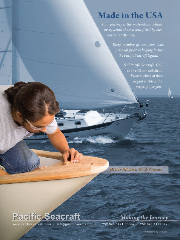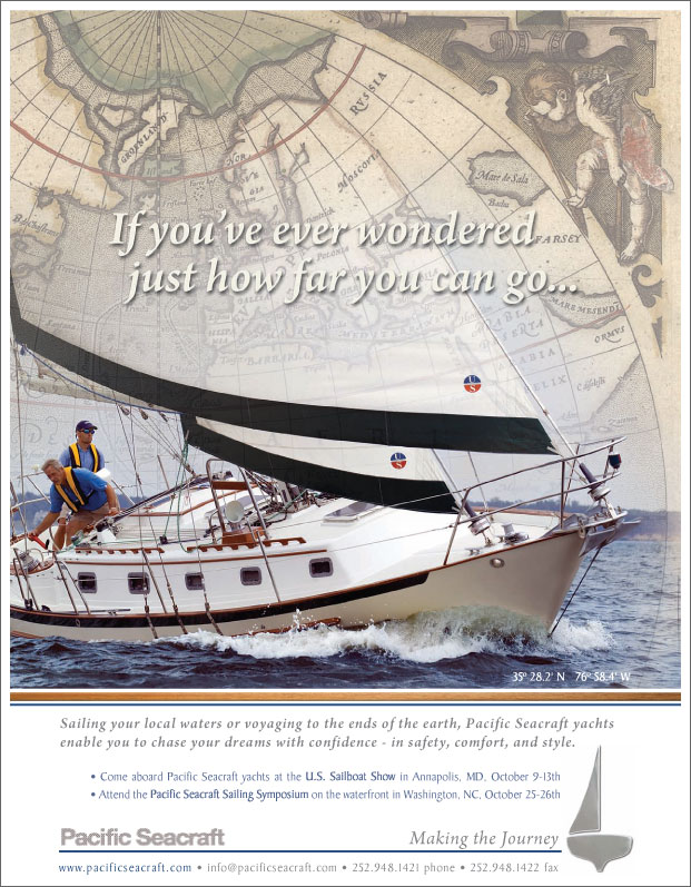 "If you've ever wondered just how far can you go..." Pacific Seacraft yachts enable you to chase your dreams with confidence - in safety, comfort and style. Click here to view full size ad. |